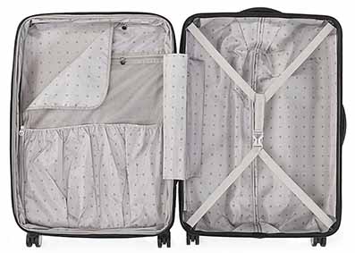 - Rollen: Trolley mit 8 Rollen, Acht drehende Spinnerrollen erlauben dem Koffer in jede Richtung 360 Grade drehen zu können.